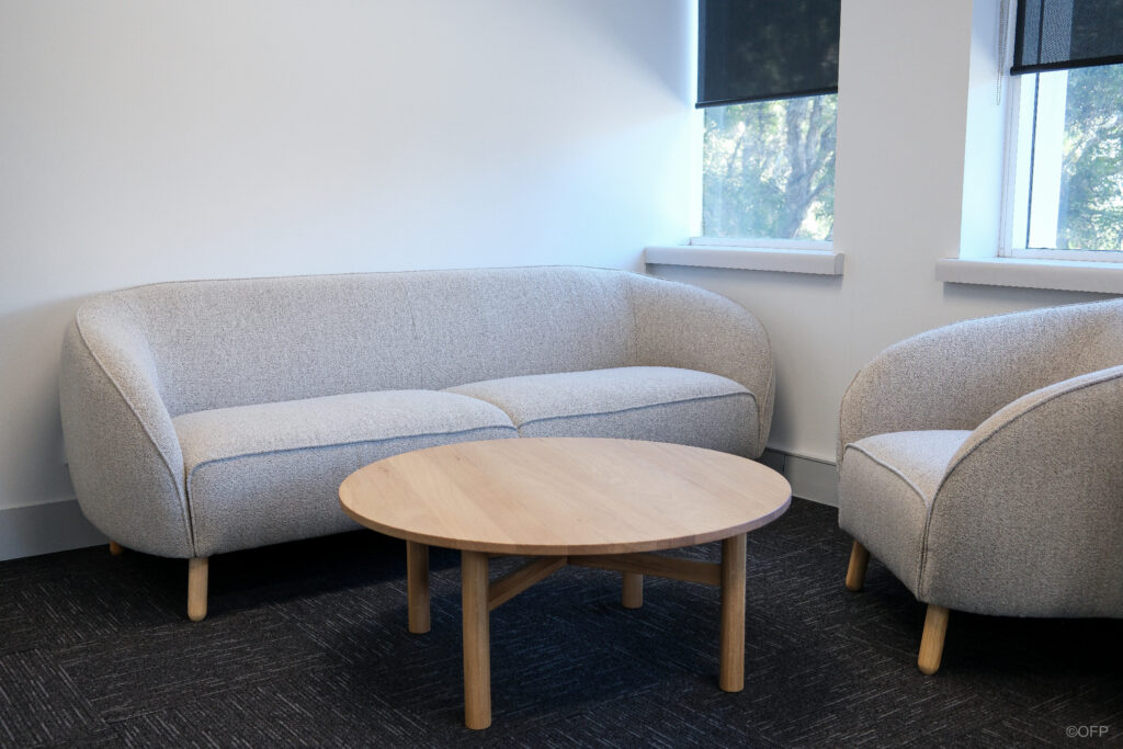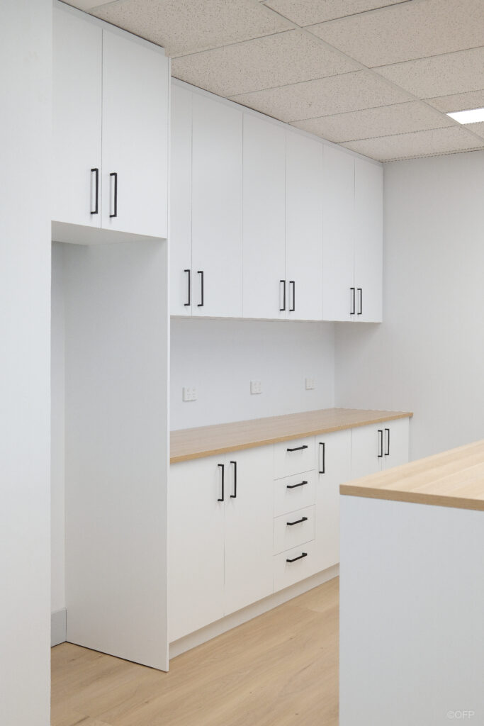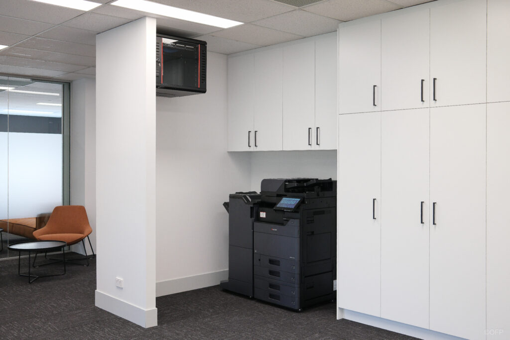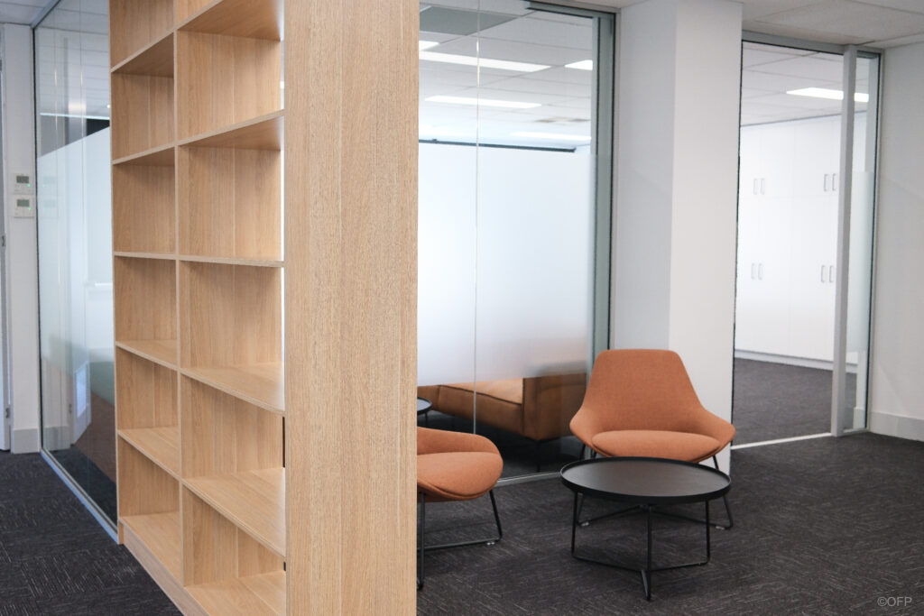 Plasterboard and glass partitions, painting and furniture in the fitout areas.