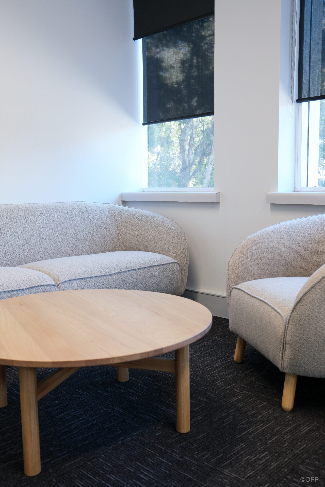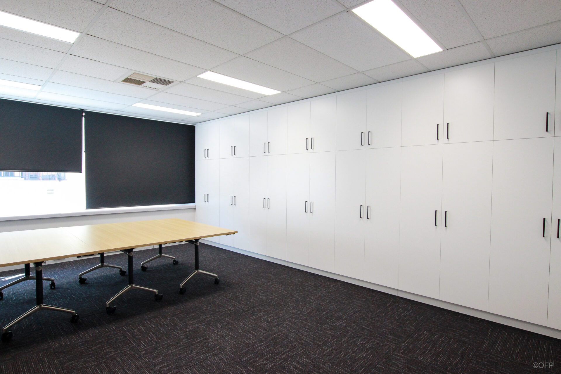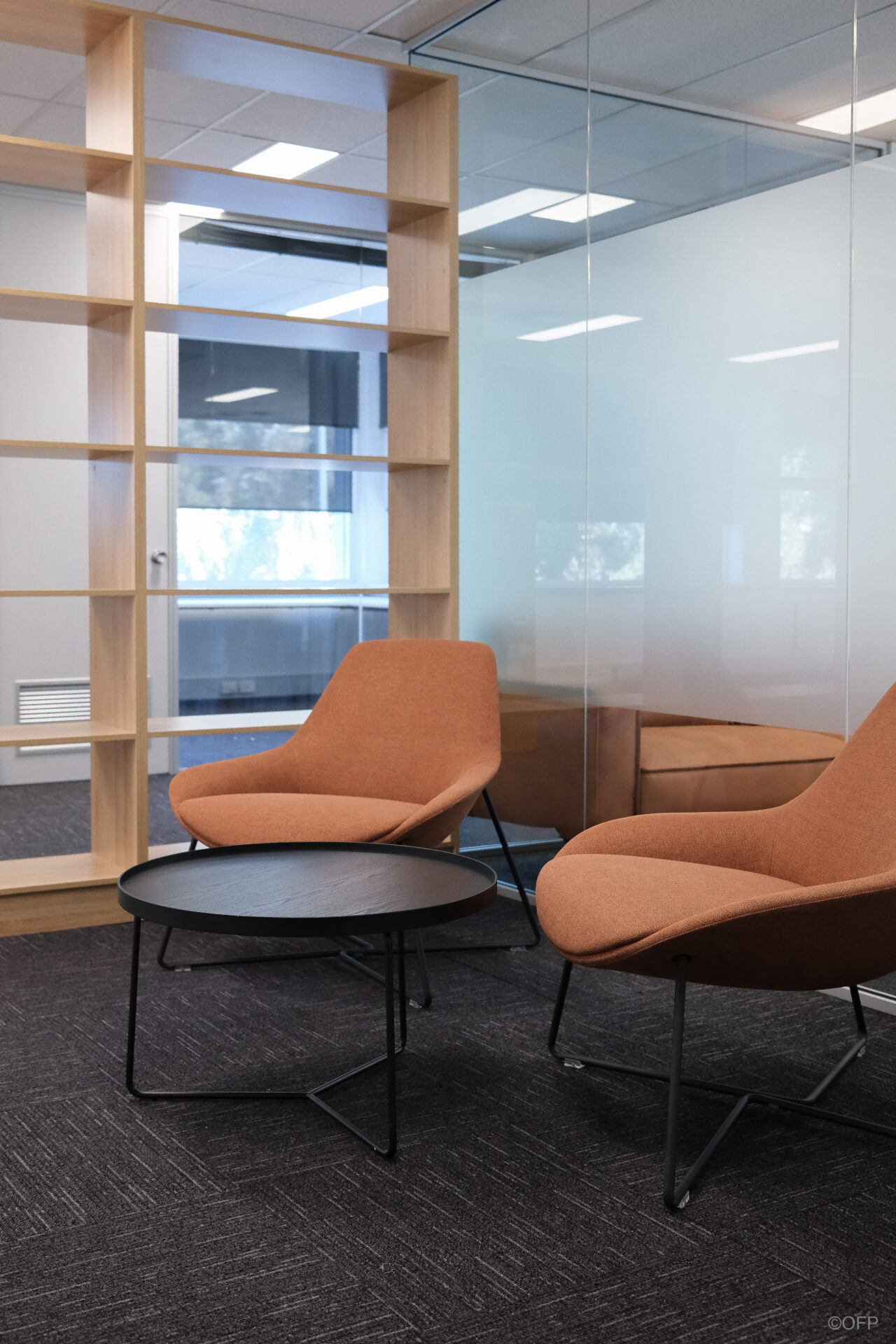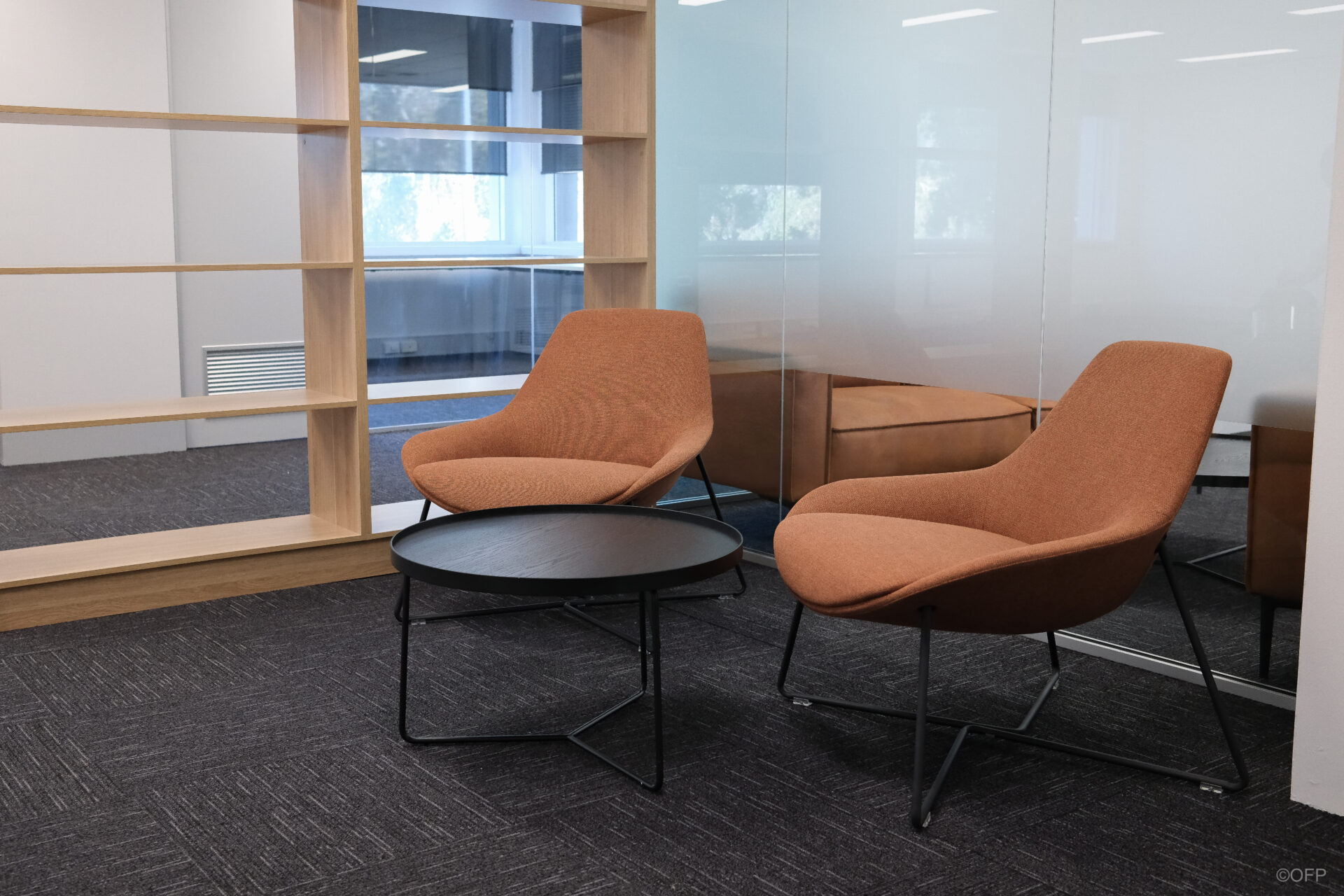 Plasterboard and glass partitions, painting and furniture in the fitout areas.
