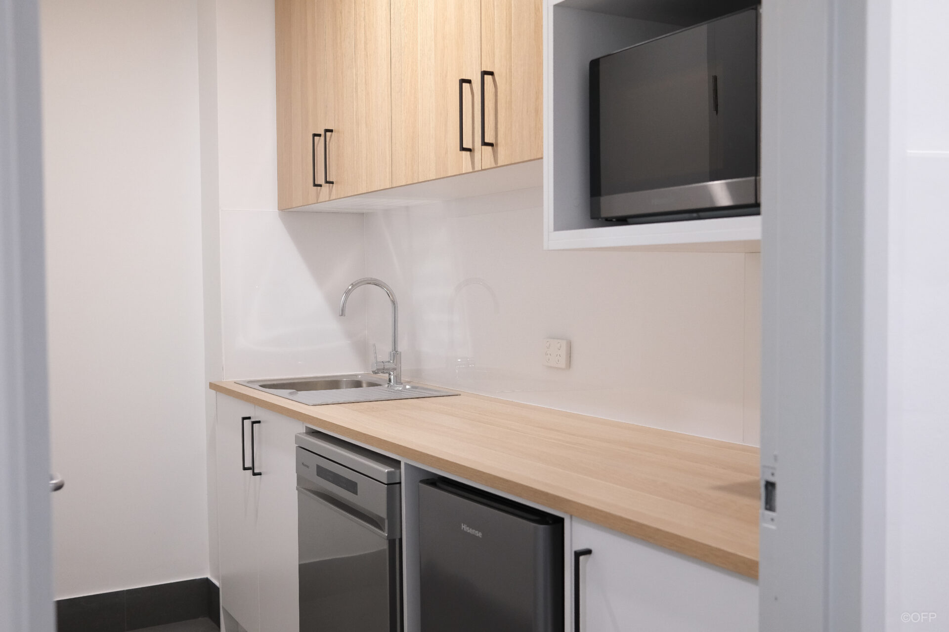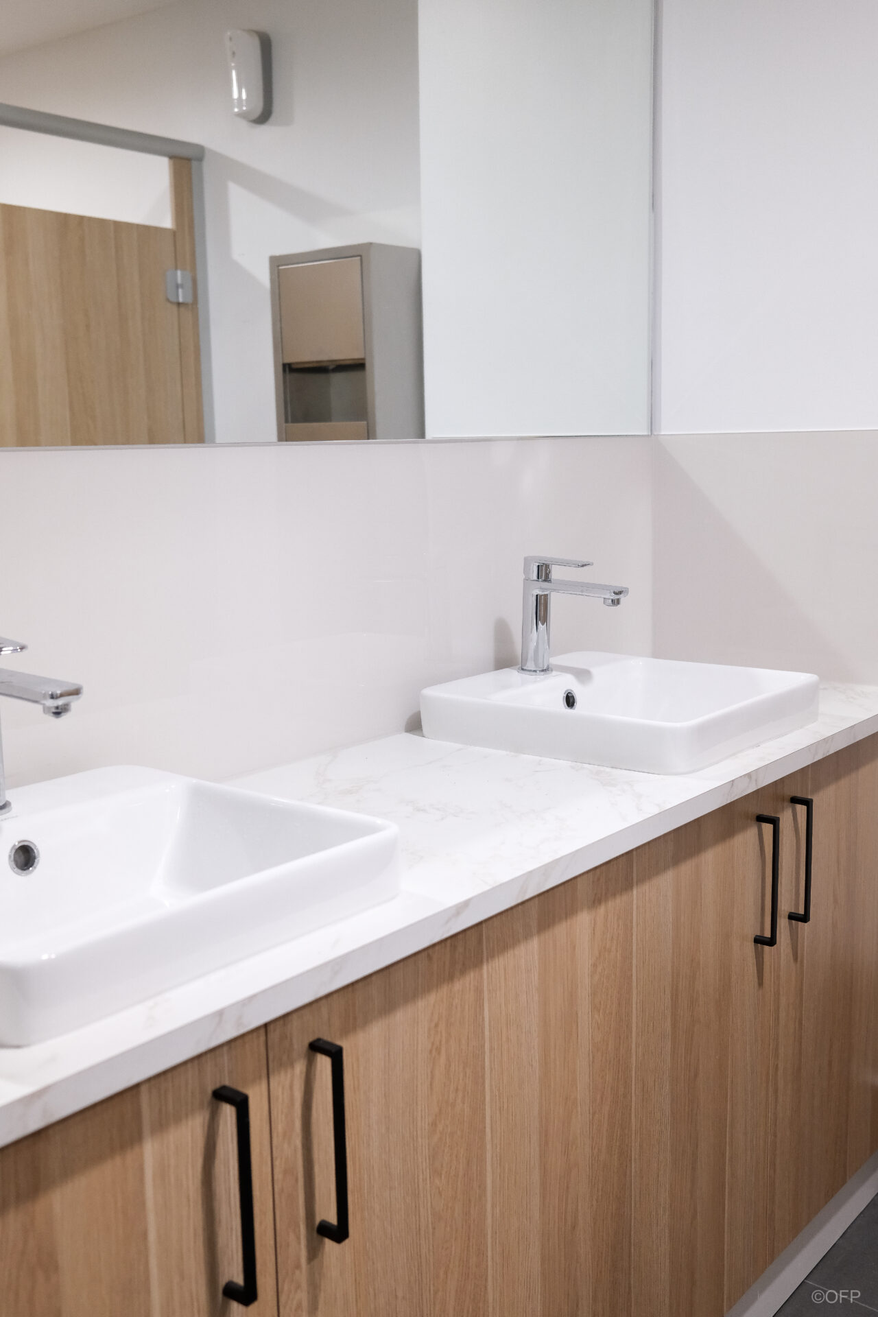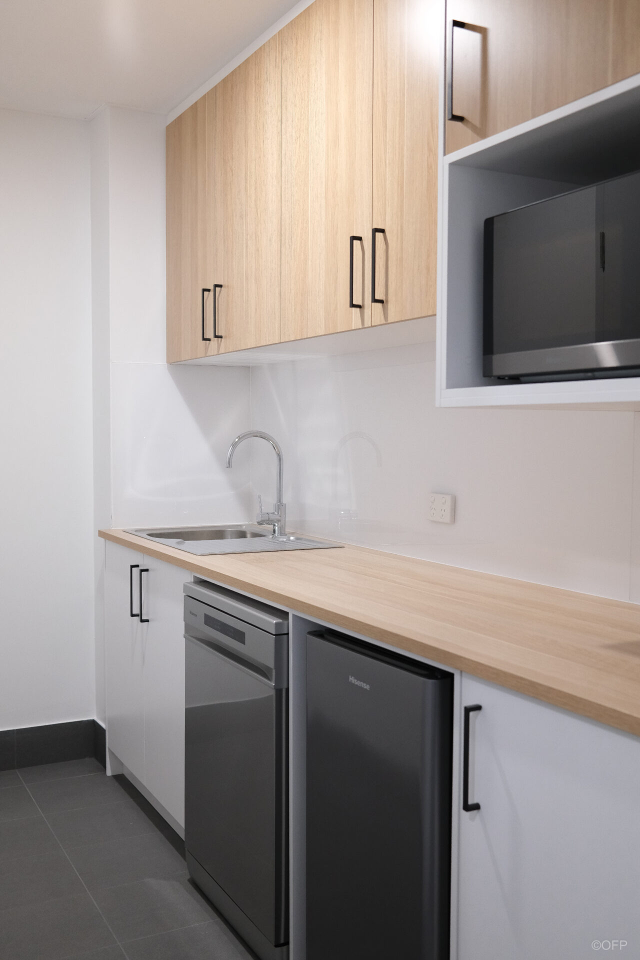 Full tiling, joinery and fixtures installing in the toilets and kitchen.