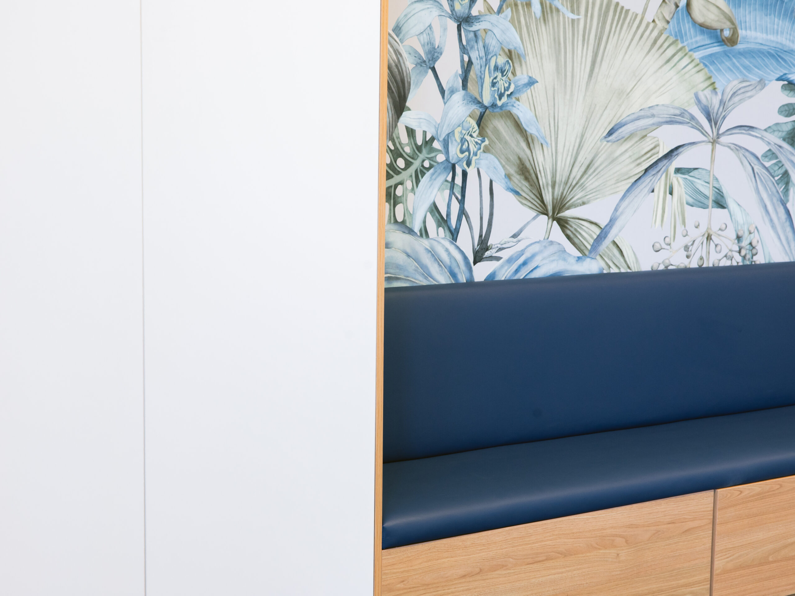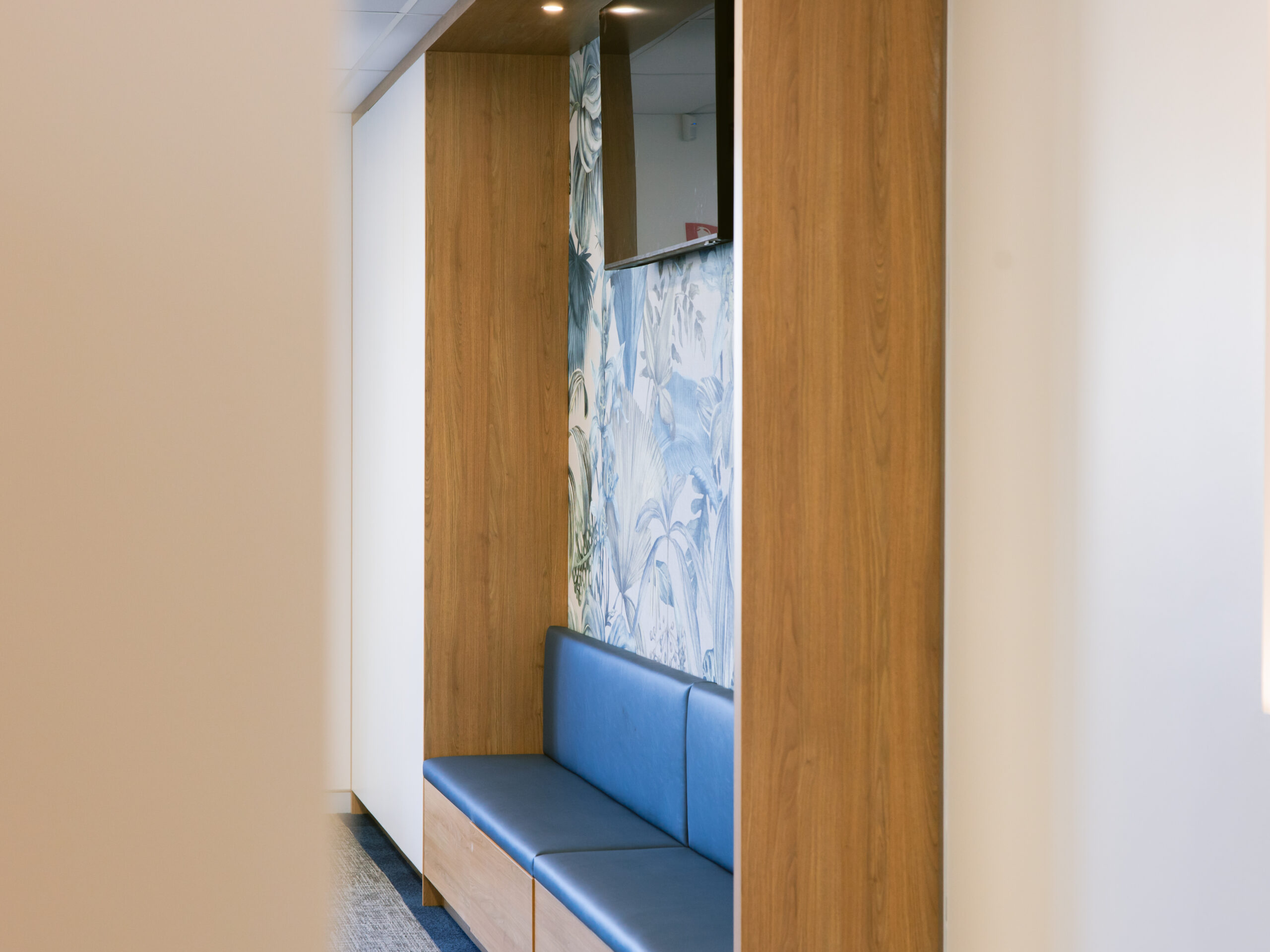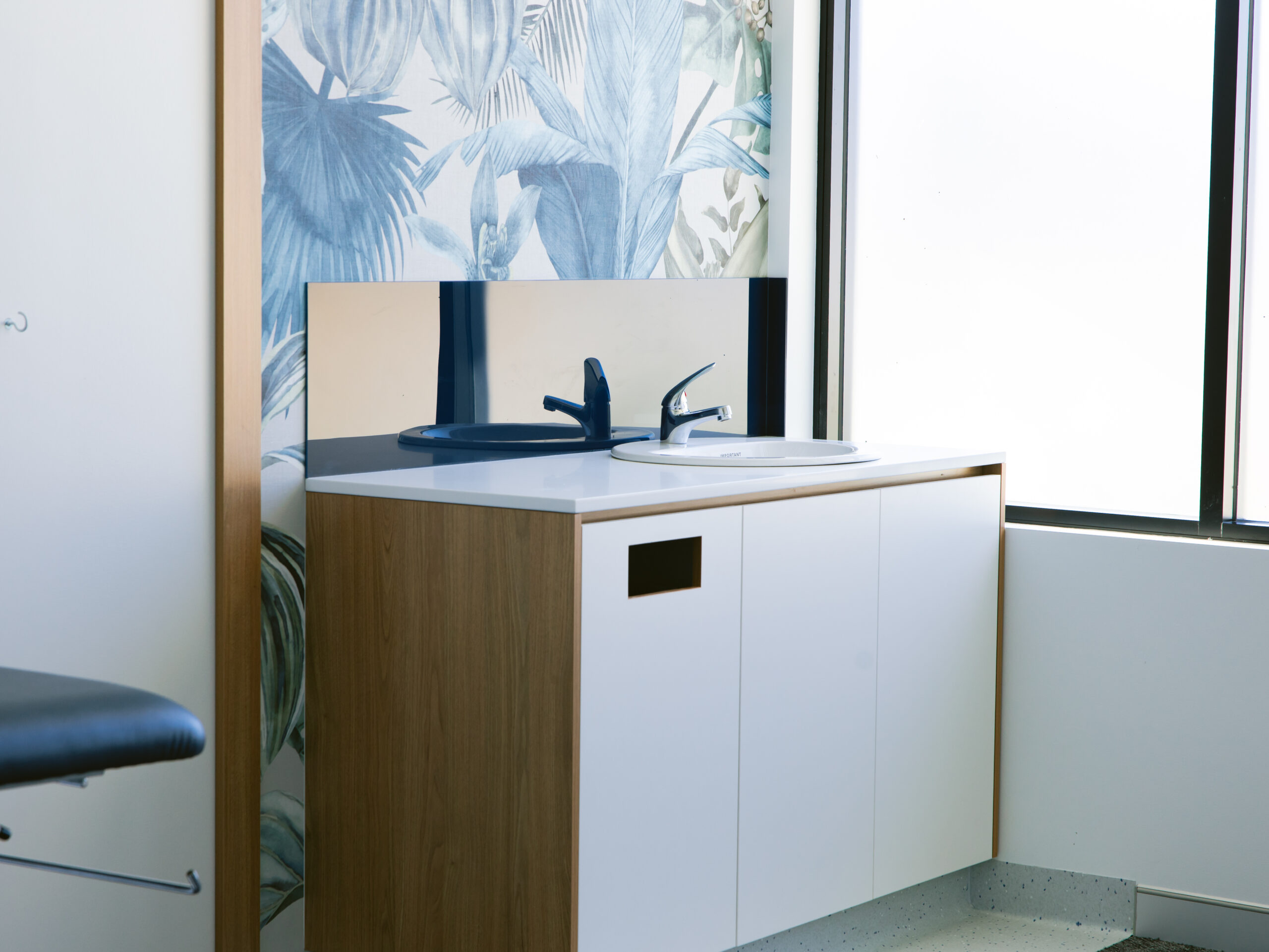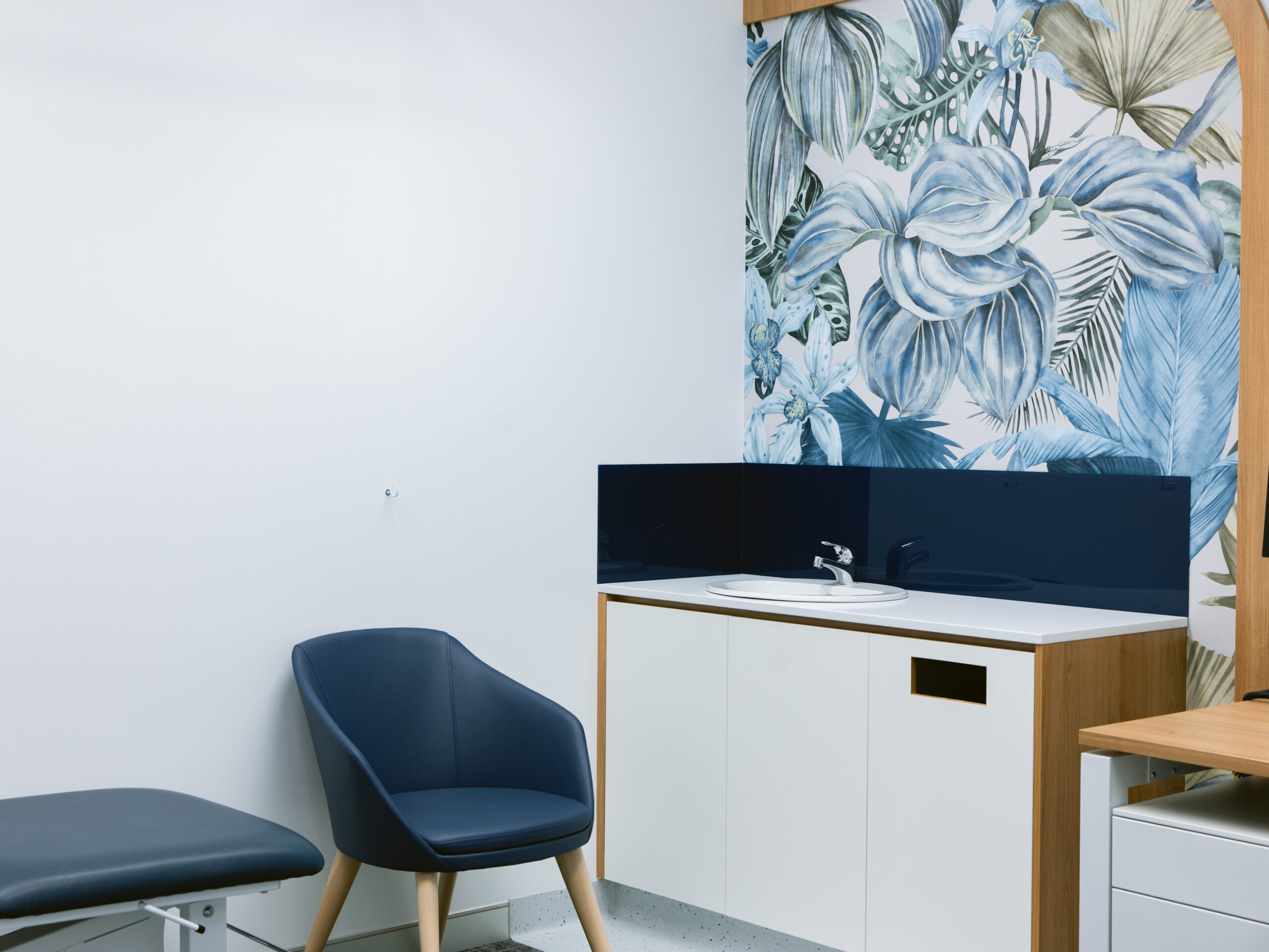 Mead Medical was a cold shell fit out with only base Build Toilets. Our team install new Hydraulics / Airconditioning / Electrics Power – Data – Lighting. New flooring was designed by our in-house design team with contrasting carpet colours, vinyl walls and flat lay vinyl flooring (coved to areas sterile nature)