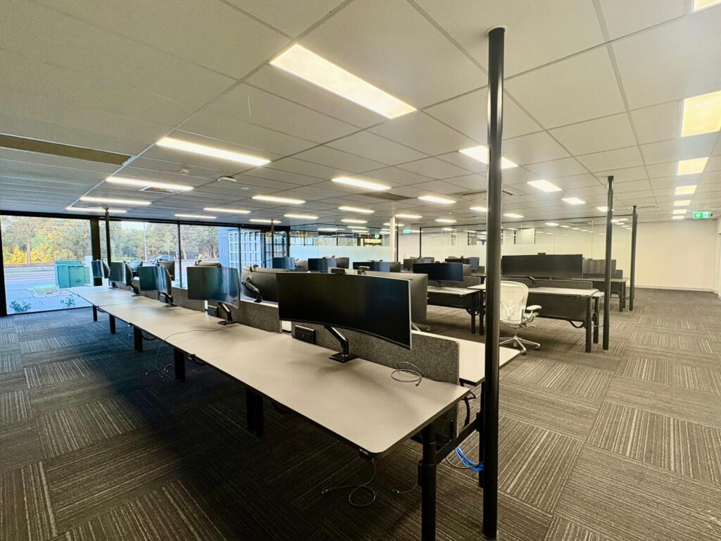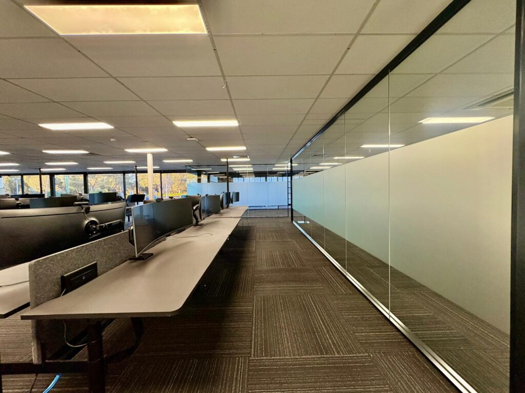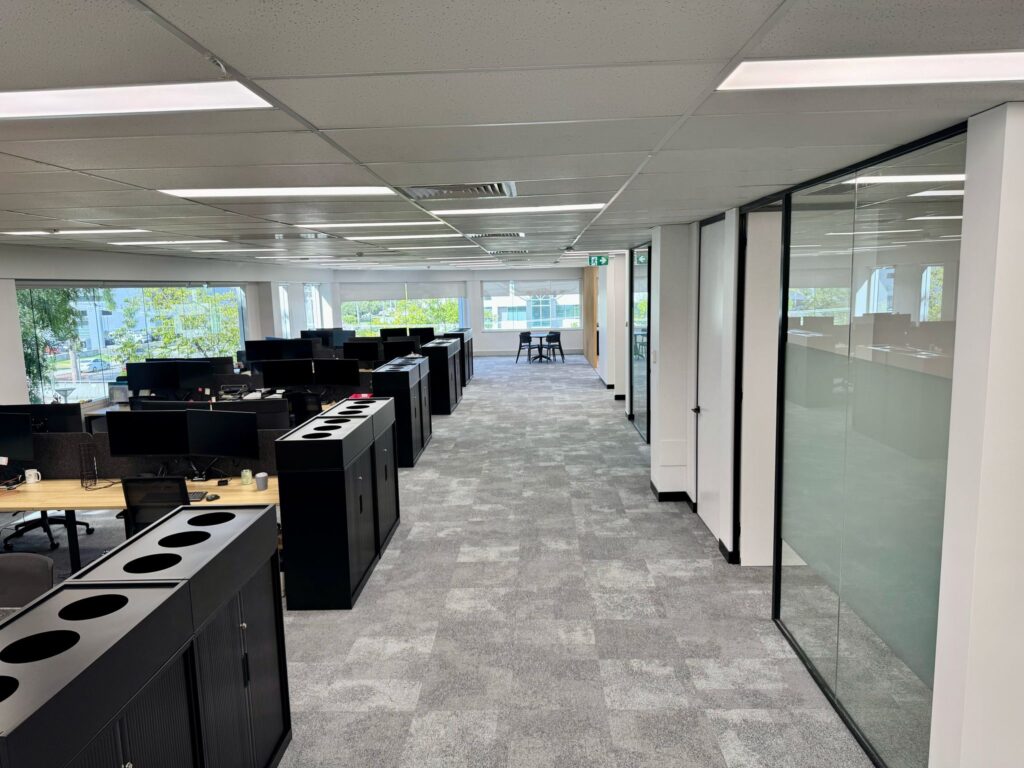 When we started it was in the middle of winter cold wet and generally horrible. Our scope was to remove all existing walls build new walls with plasterboard and glass using a stylish Black commercial frame and safety glass. Re use where possible existing Airconditioning with additional supplemental units where necessary. Repaint from a loverly purple to a more appropriate wall and door colours. Placement of height adjustable ergonomic workstations. New reception purpose made via our in-house cabinet shop.