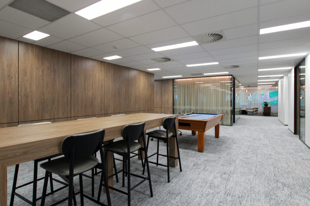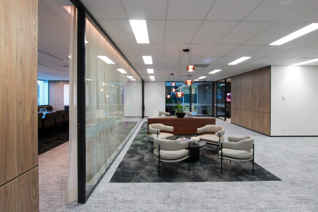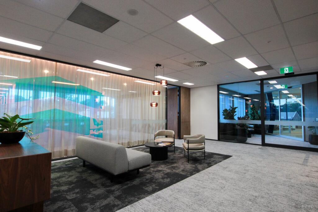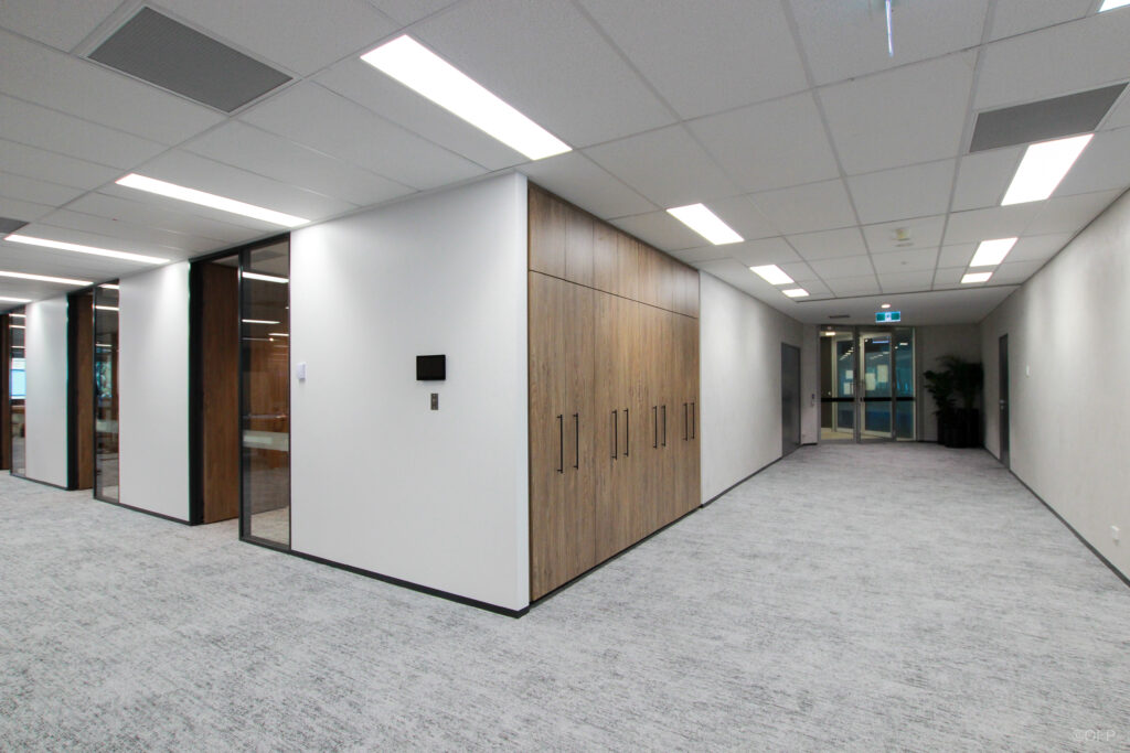 • Full fitout. Joinery, plasterboard, glazing, aluminium, flooring, hydraulics, electrical, mechanical, lighting, curtains
