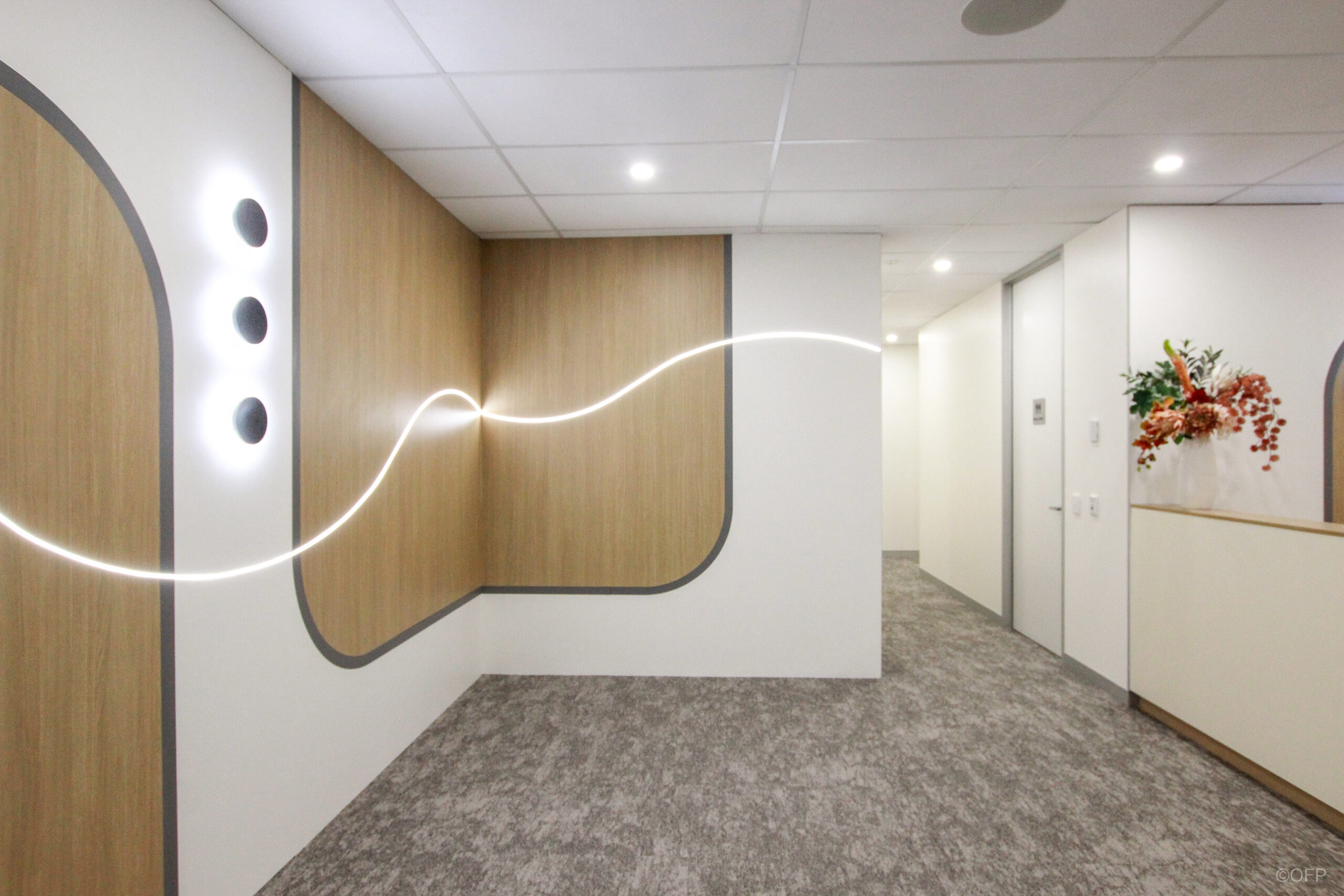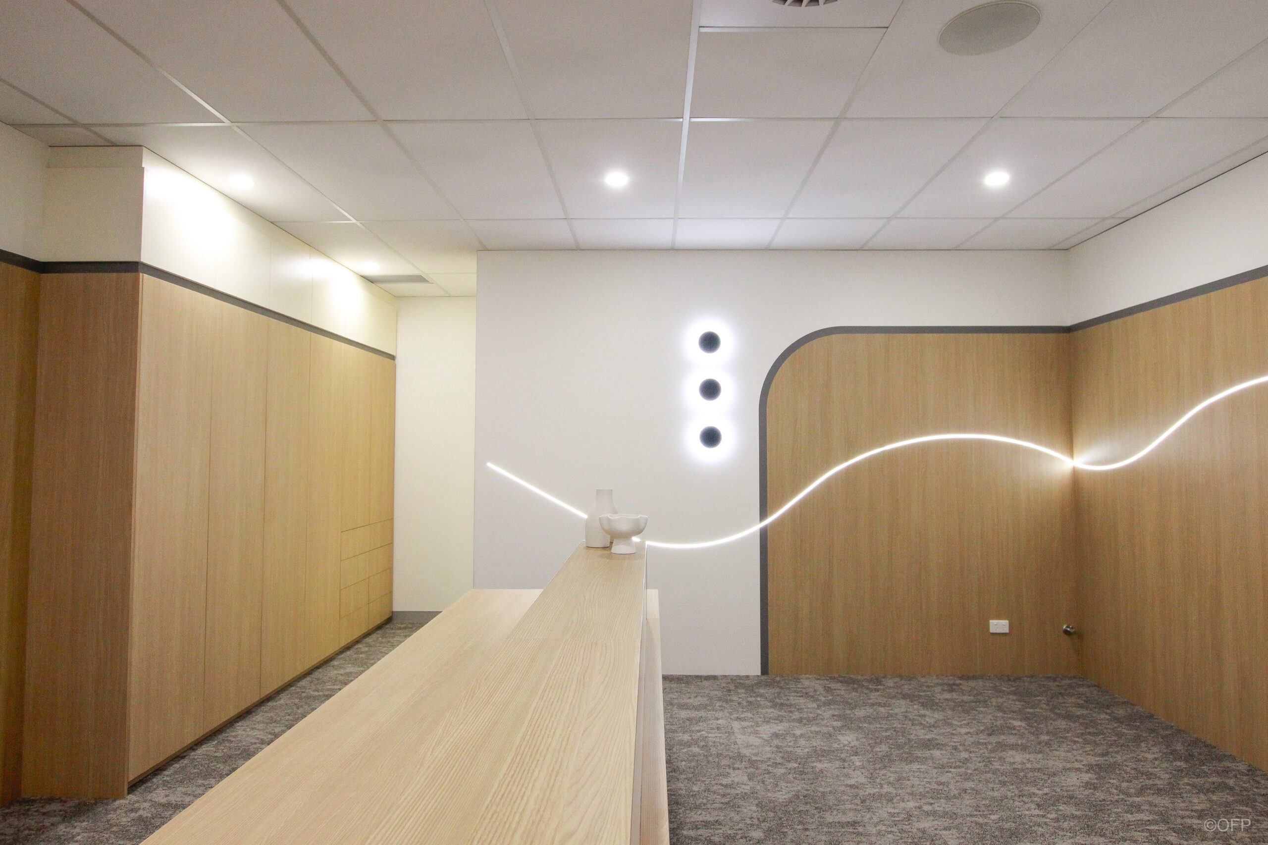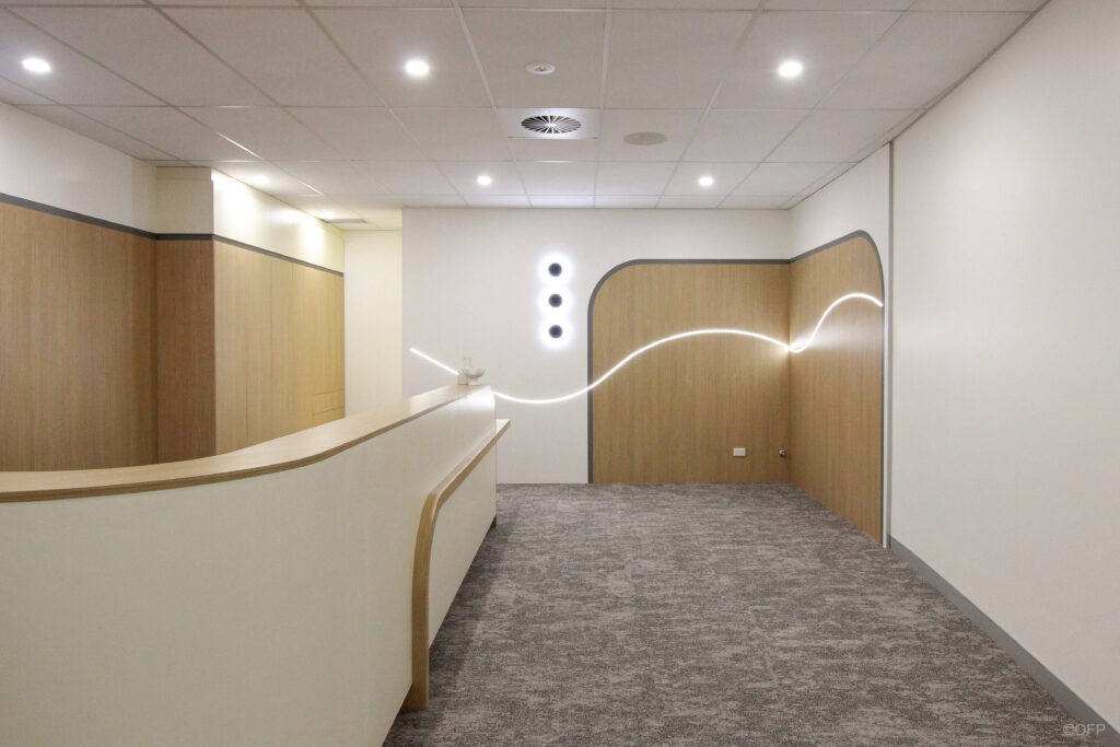 New electrical works Power data lighting and music system. High spec acoustic consult rooms with drop seals and ceilings tiles for our client’s privacy was paramount in design and execution on site. KR completed a complicated curved and panelling works throughout the new tenancy works, The Hydralics infrastructure was an interesting complicated beast with multi-tenancy above ceiling works. Nevertheless, with fantastic commutation it was achieved and all tenancies happy with works.