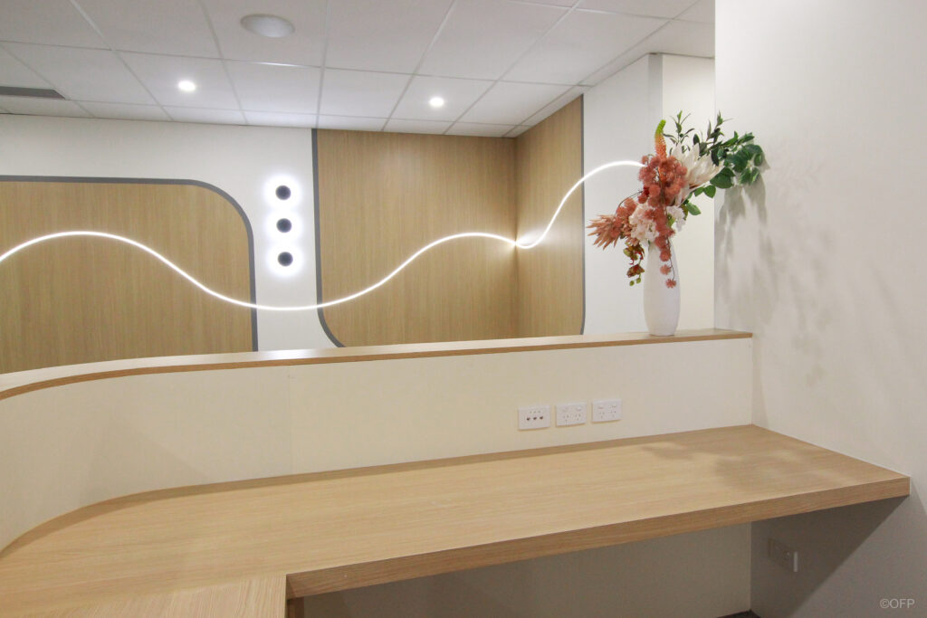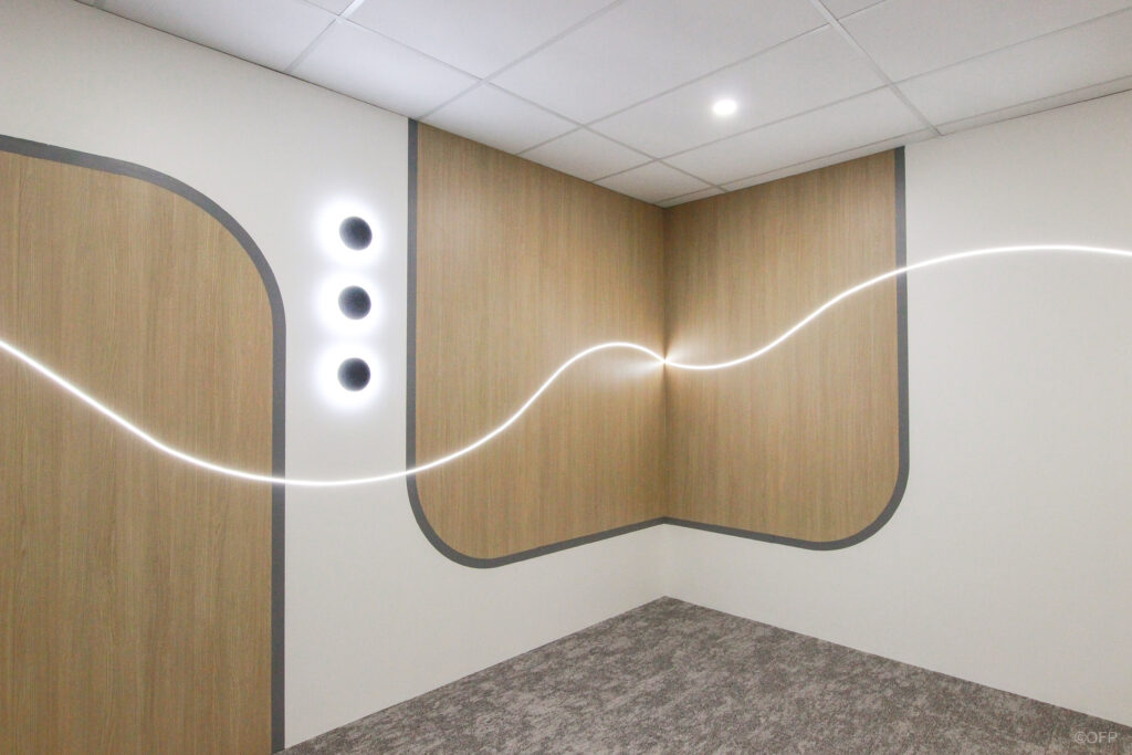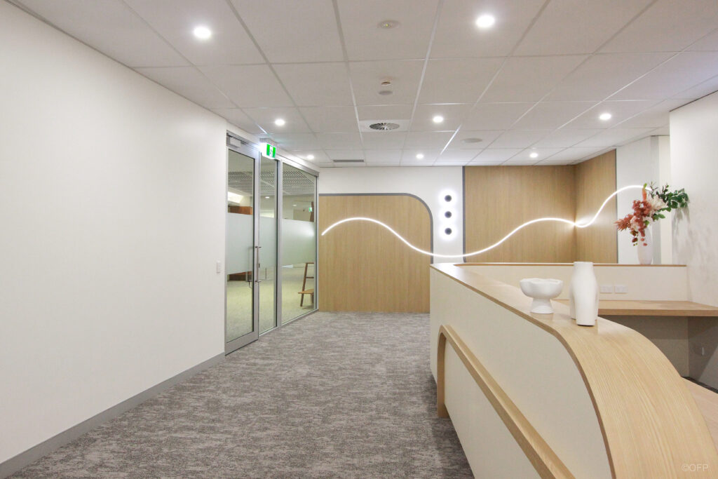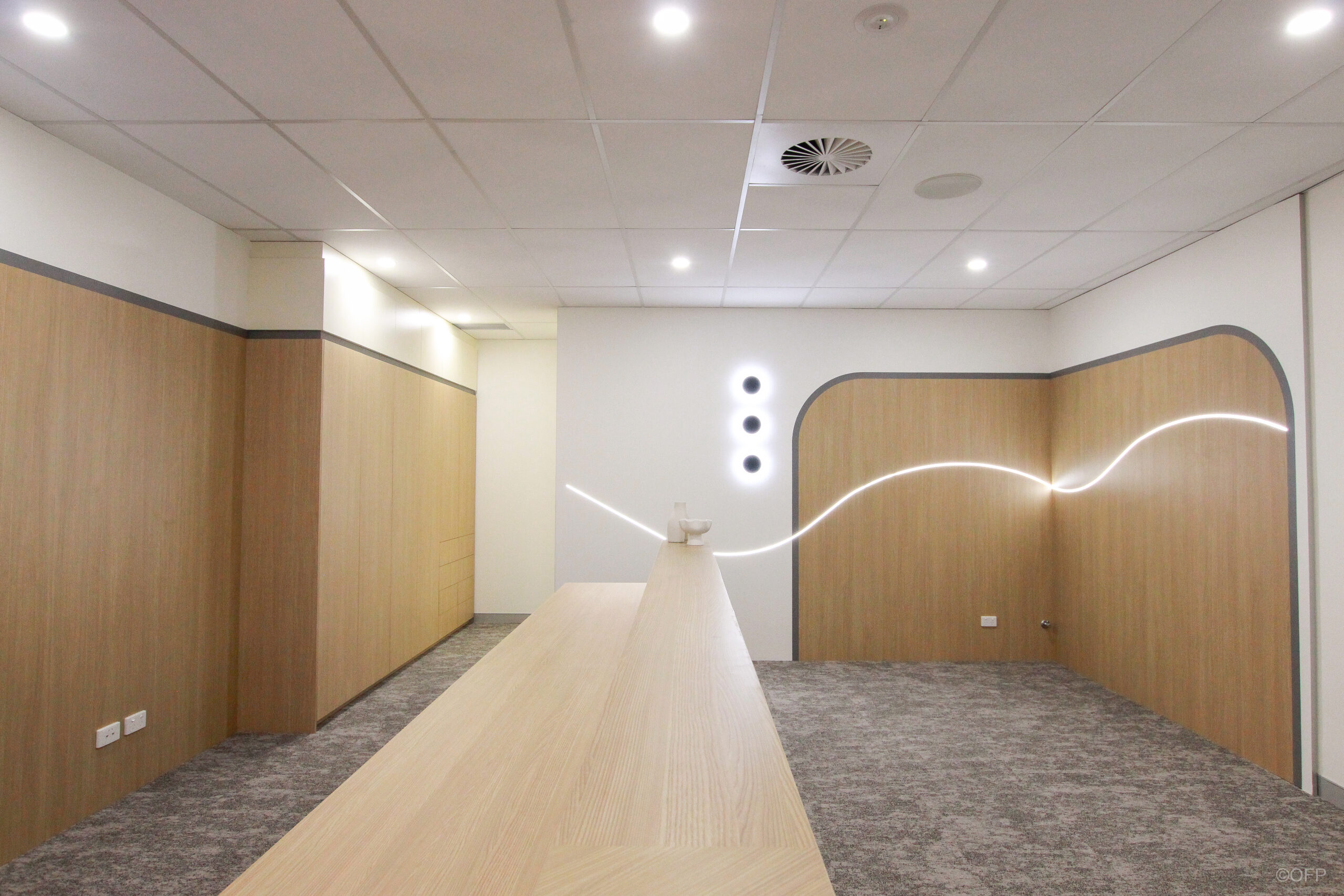 New electrical works Power data lighting and music system. High spec acoustic consult rooms with drop seals and ceilings tiles for our client’s privacy was paramount in design and execution on site. KR completed a complicated curved and panelling works throughout the new tenancy works, The Hydralics infrastructure was an interesting complicated beast with multi-tenancy above ceiling works. Nevertheless, with fantastic commutation it was achieved and all tenancies happy with works.