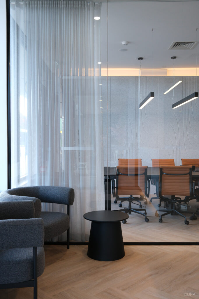 The final outcome was a sleek, luxurious office that exceeded the client’s expectations both in quality and turnaround time. OFP delivered the full space including everything seen in the attached images resulting in a cohesive, modern workplace. The combination of stone elements, bespoke joinery, acoustic panels and feature lighting created an elevated yet professional environment. OFP are extremely proud of this project and the complete transformation achieved.