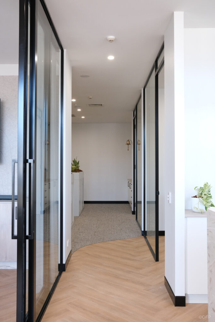 Our client wanted to establish their first dedicated office space for a growing real estate business. The goal was to create a modern and luxury environment by incorporating premium touches such as acoustic wall panels, custom blinds and feature linear lighting throughout the common spaces.