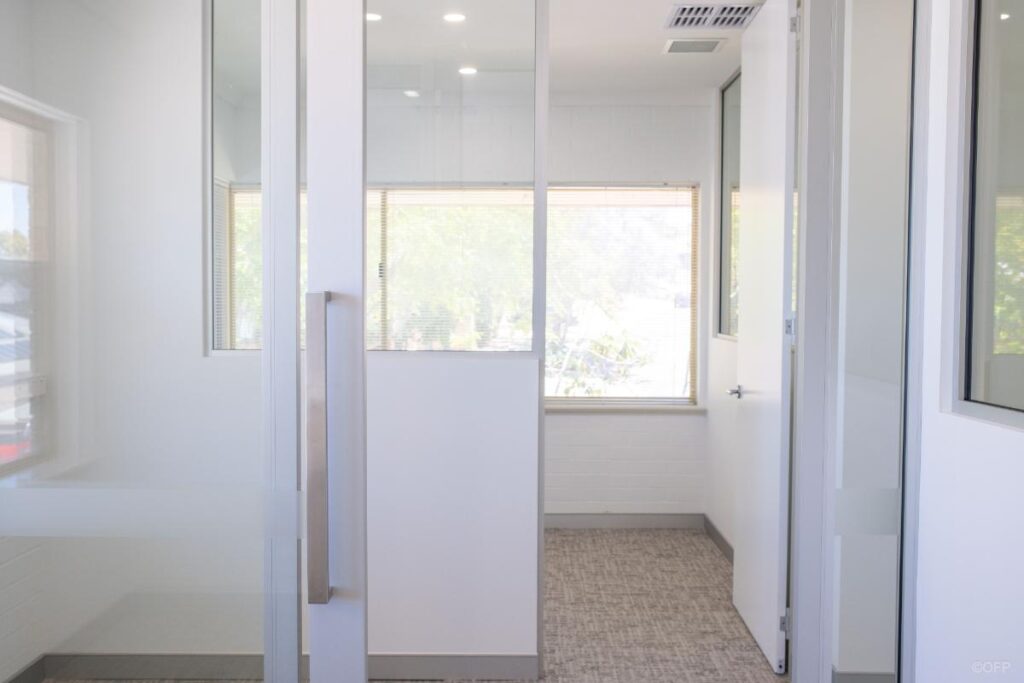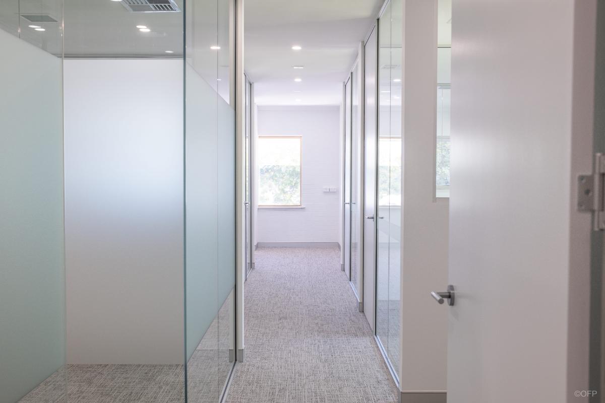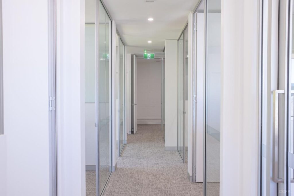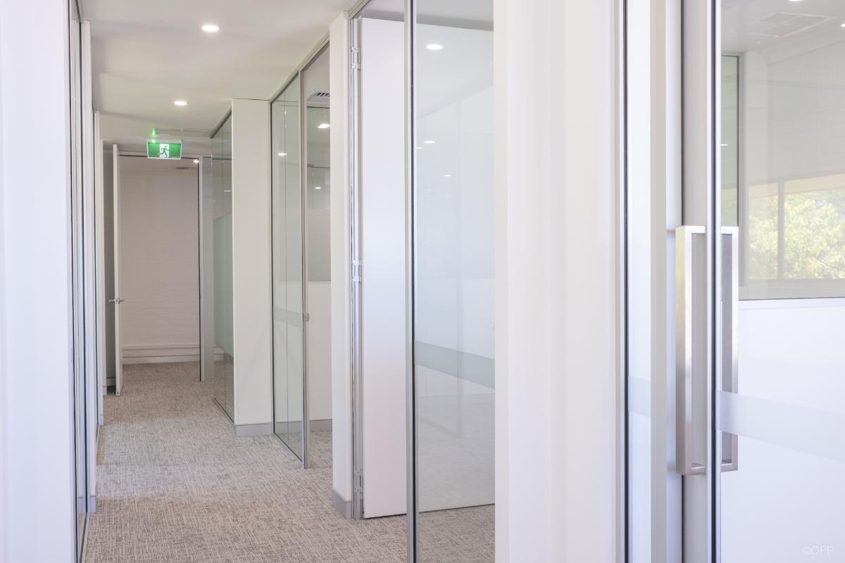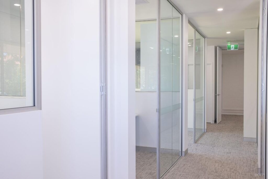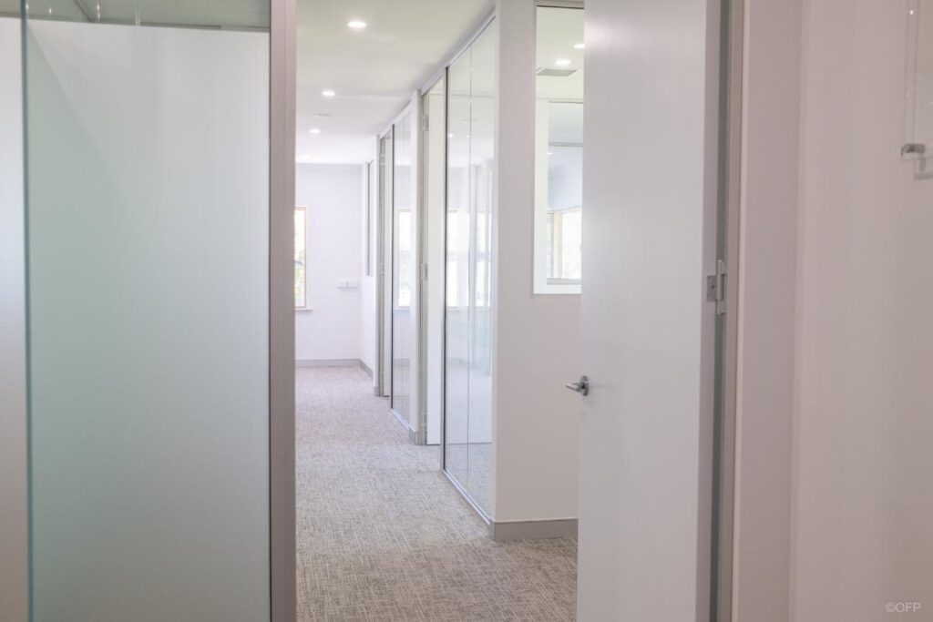 The goal was to create a workspace suitable for a full time and office-based team with a strong focus on maximising natural light and providing spacious offices for staff. As the tenancy was located above ground floor, transporting large glazed panels posed access challenges to the job site. OFP worked closely with the client and building management to successfully deliver most panels as standard sizes while having to accommodate one panel in two sections to suit constraints.